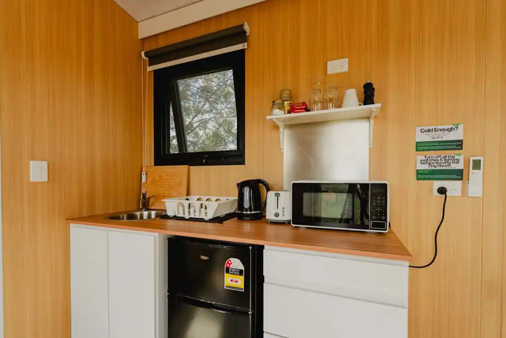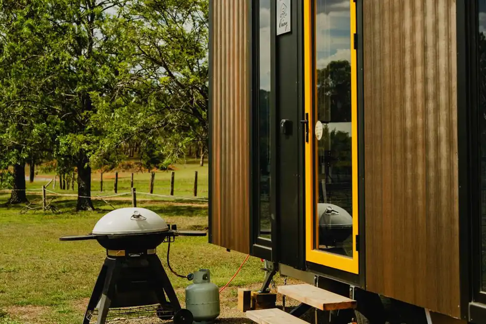 As the day winds down, enjoy sweeping sunset views across the surrounding countryside. In the morning, you may even wake to kangaroos grazing nearby – a gentle reminder that you’re staying somewhere special. Perfect for couples seeking a unique, peaceful staycation, this tiny house blends simplicity, comfort and natural beauty in one memorable escape.