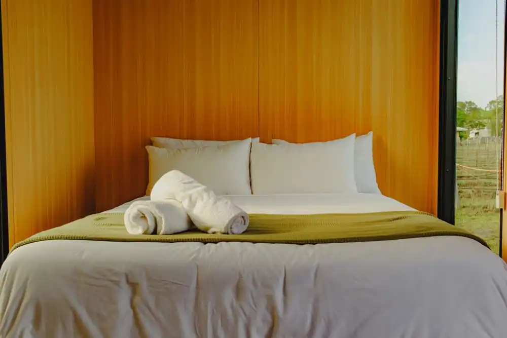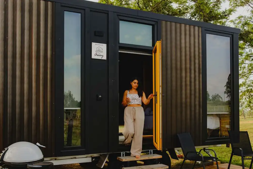 Tucked into the open landscape of Bluebush Estate, this TinyAway cabin offers a relaxed tiny house escape surrounded by nature. Set within wide open spaces, this thoughtfully designed studio cabin invites you to slow down, step outside, and reconnect with the outdoors without giving up comfort.