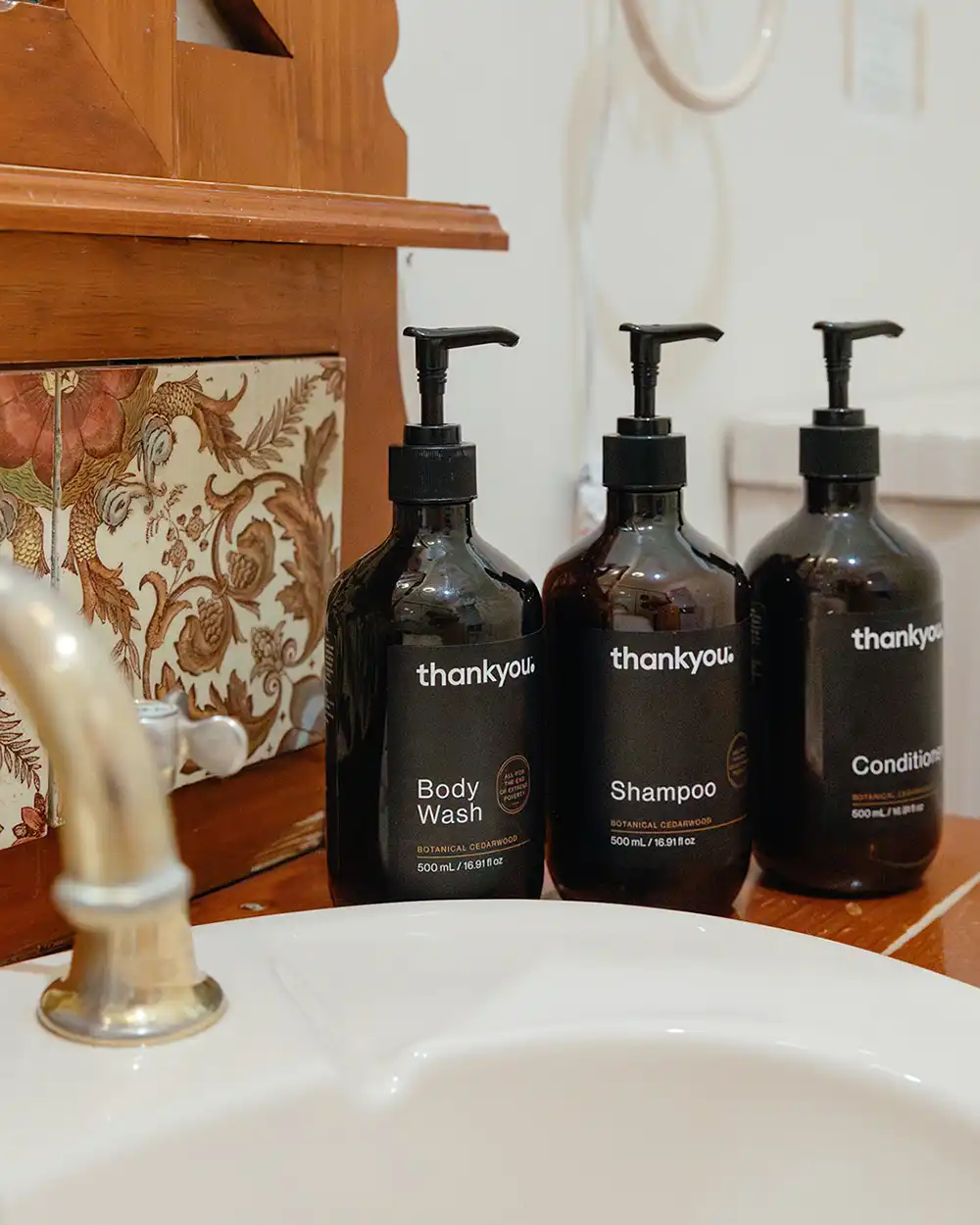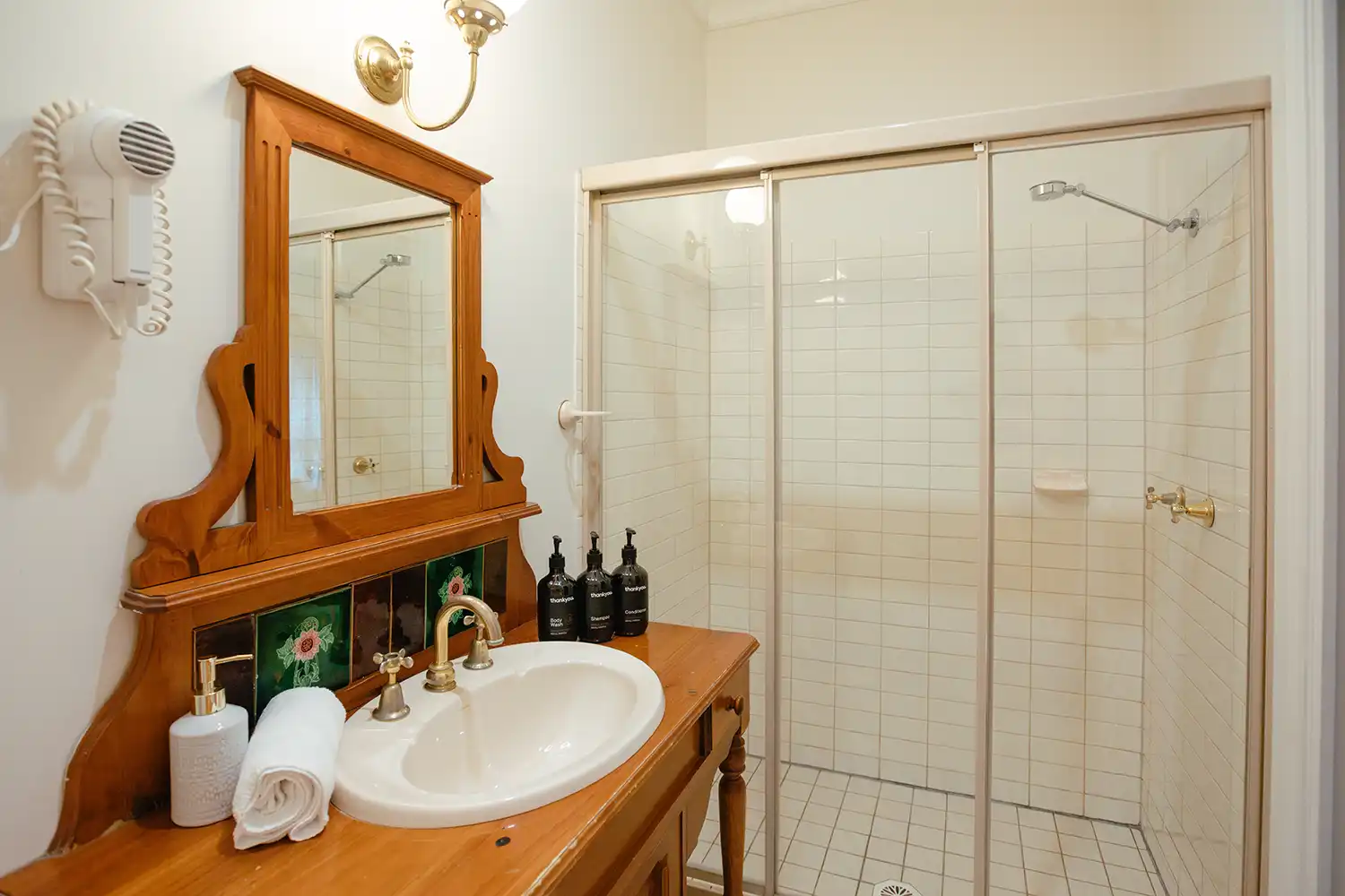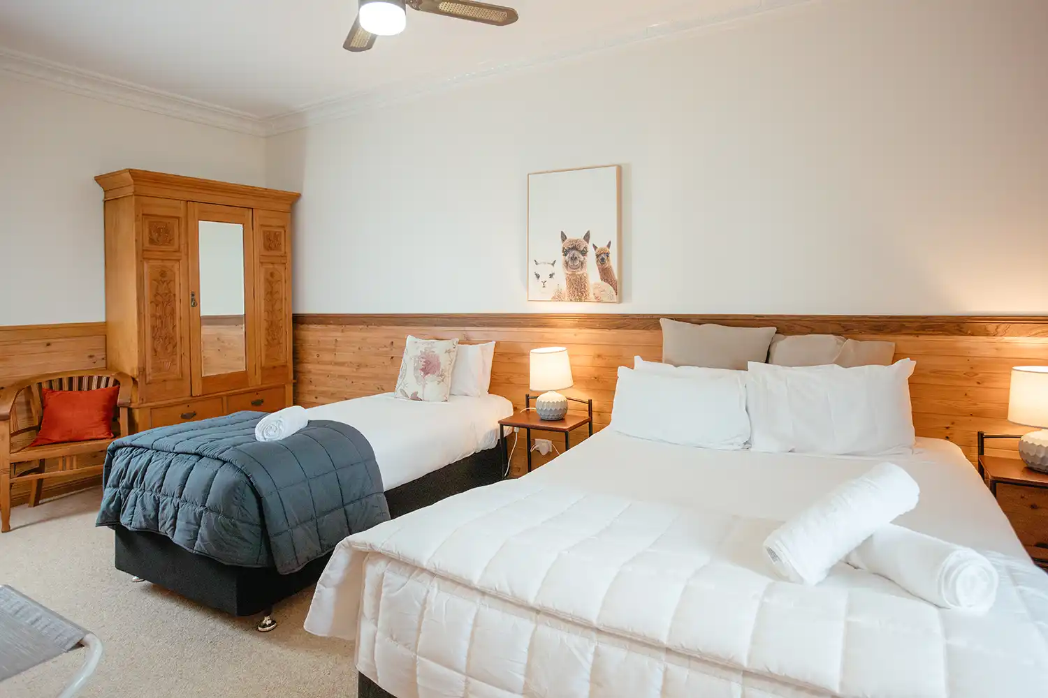 Accommodation comprises three bedrooms, each with its own ensuite, making The Chalet particularly appealing for groups or families travelling together. Additional shared spaces include a dedicated billiards room and a large undercover entertaining area with gas BBQ facilities – ideal for casual meals, celebrations or relaxed afternoons enjoying the estate’s peaceful surroundings.