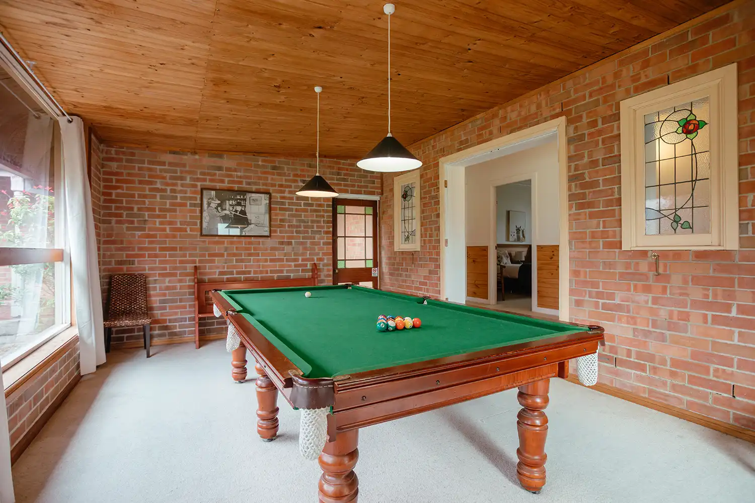 Split across 3 Self Contained cottages, your booking will include Bluebush Lodge, Bluebush Cottage and Bluebush Chalet. The Bluebush Lodge has an extra large kitchen with gas cook-top and electric oven, dishwasher and microwave, perfect for group meals. Each cottage has a spacious lounge area with 2 cottages featuring cosy gas log fire for those chilly winter nights and 2 billiards tables.